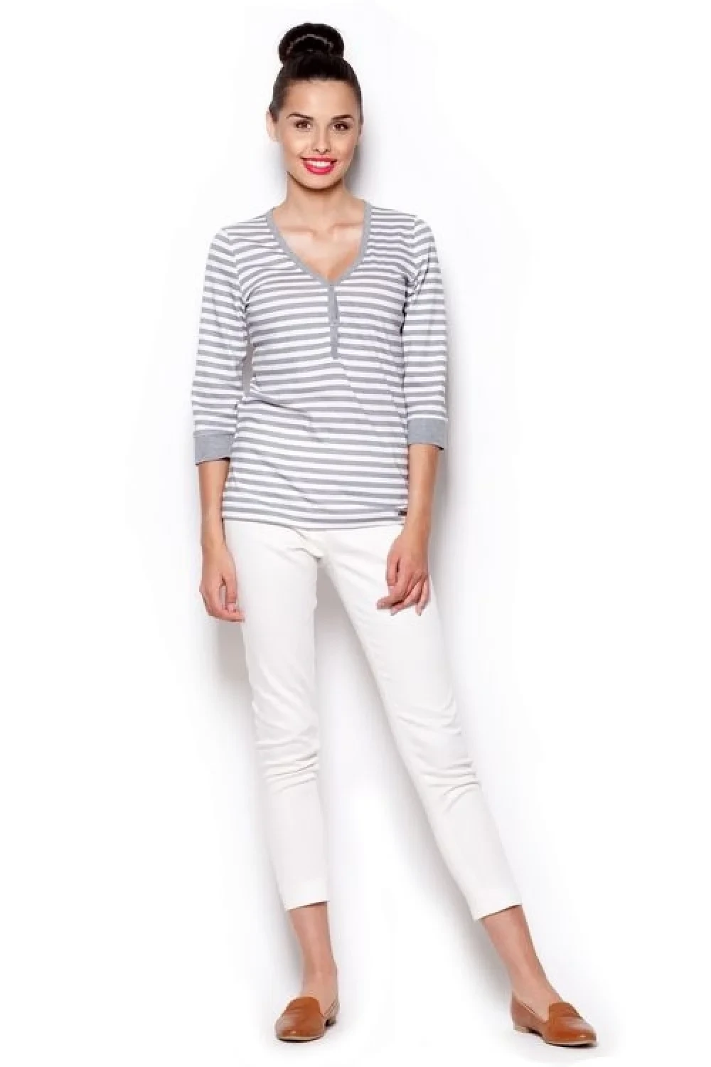 Pruhované tričko M289 FIGL s 3/4 rukávy a velkým podílem bavlny je vhodné do práce i pro volný čas. Model s poměrně velkým výstřihem, který se zapíná na dva druky je k dostání ve třech barevných provedeních.