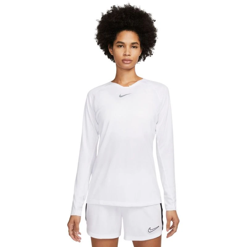 Dámské tričko Nike Dri-FIT Park První vrstva bílá AV2610 100. Tričko Nike s dlouhým rukávem se skvěle hodí jako první vrstva oblečení v chladných dnech. Technologie Dri-FIT zajišťuje sucho a pohodlí během fyzické aktivity díky účinnému odvodu vlhkosti ven. Přiléhavý střih s raglánovými rukávy. Otvory na palce, které nejsou při nepoužívání vidět. Logo Swoosh. Materiál: 100% polyester.