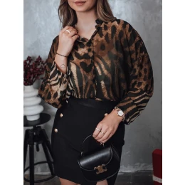 Tato košile se zvířecím motivem je určena pro ženy, které rády vyčnívají z davu. Lehký, vzdušný materiál a dravý vzor dodávají stylizaci jedinečný charakter. Hodí se k elegantní sukni i k džínům a vytváří tak vzhled ideální na večerní vycházku nebo setkání s přáteli.