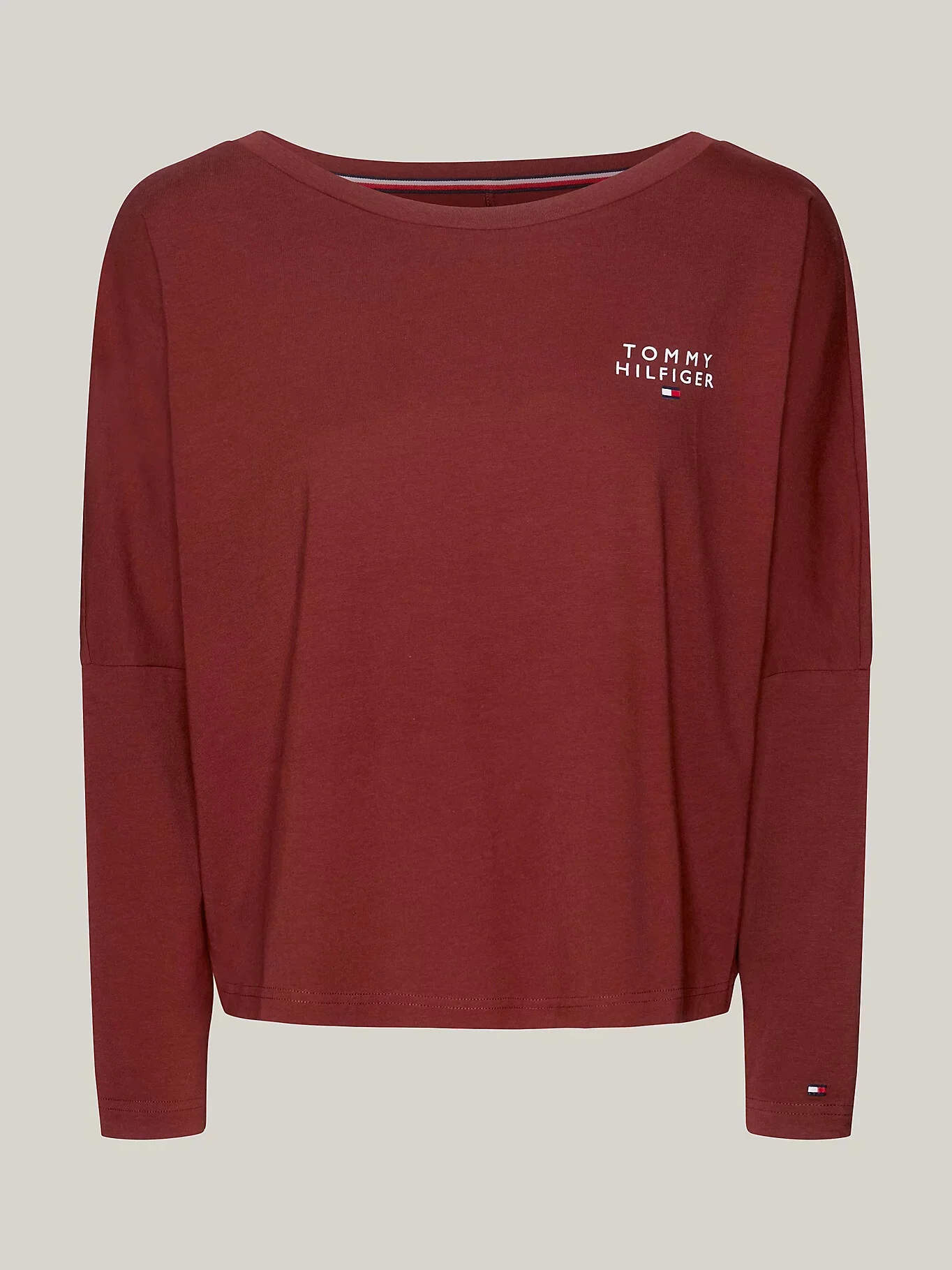 Dámské tričko s dlouhým rukávem UW0UW04153 DW5 kaštanové - Tommy Hilfiger