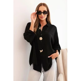 Dámská košile s viskózou, ozdobnými knoflíky a límečkem černá