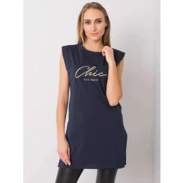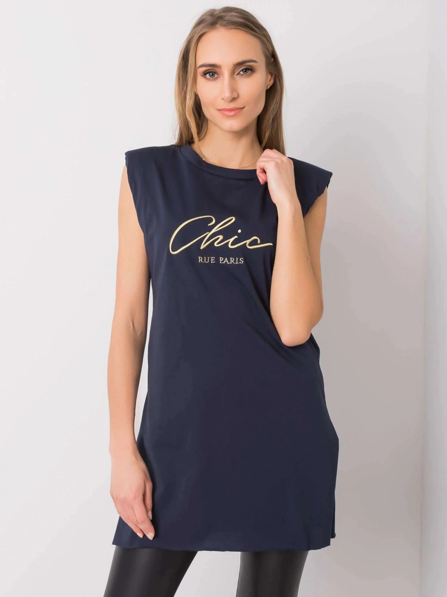 RUE PARIS Tmavě modré tričko s výšivkou .