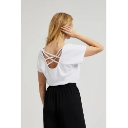 Bílé dámské tričko T-shirt basic s výstřihem vzadu Feel Good (4662-01)