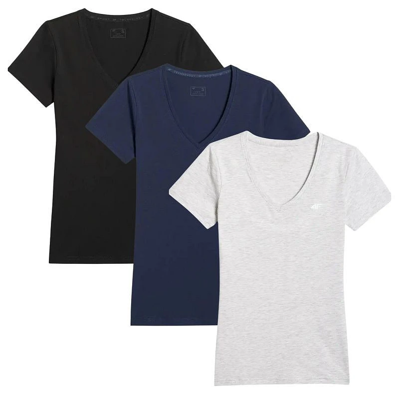 Dámské tričko s výstřihem do V 4F - sada 3 kusů triček pro každodenní nošení