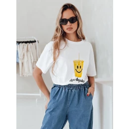 Toto dámské tričko volného střihu s potiskem usměvavého hrnečku a nápisem "Los Angeles" je určeno pro fanoušky městské atmosféry. Příjemný bavlněný materiál je ideální pro teplé dny a módní grafika dodá charakter každému outfitu.