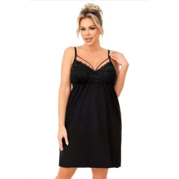 Poznaj niezwykle efektowną damską koszulę nocną z delikatnej, oddychającej wiskozy, która łączy elegancję, wygodę i zmysłowy wygląd. Model zachwyca głębokim dekoltem wzbogaconym ozdobnymi paseczkami, które subtelnie podkreślają linię biustu. Górna część koszuli została wykonana z misternie tkanej koronki o kwiatowym motywie, dodającej całości wyjątkowej kobiecości. Koszula posiada wąskie, regulowane ramiączka, dzięki czemu świetnie dopasowuje się do sylwetki. Miękka tkanina z wysoką zawartością wiskozy gwarantuje pełen komfort użytkowania, wysmukla optycznie figurę i pięknie układa się na ciele. Model pakowany jest w eleganckie pudełko — idealny pomysł na prezent.
