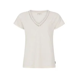 Jemné vyhrnutí na rukávech a otevřené prošívané detaily podél výstřihu do V a na ramenou dodávají krásný stylový nádech.