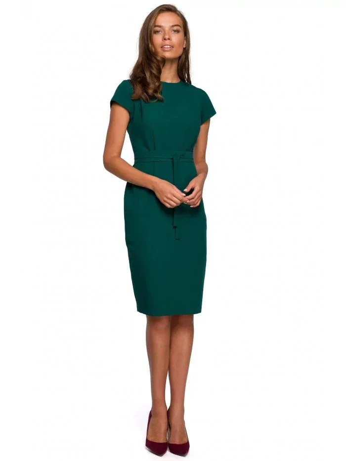 Dámské tužkové šaty s páskem na zavázání S239 Tmavě zelená - Stylove