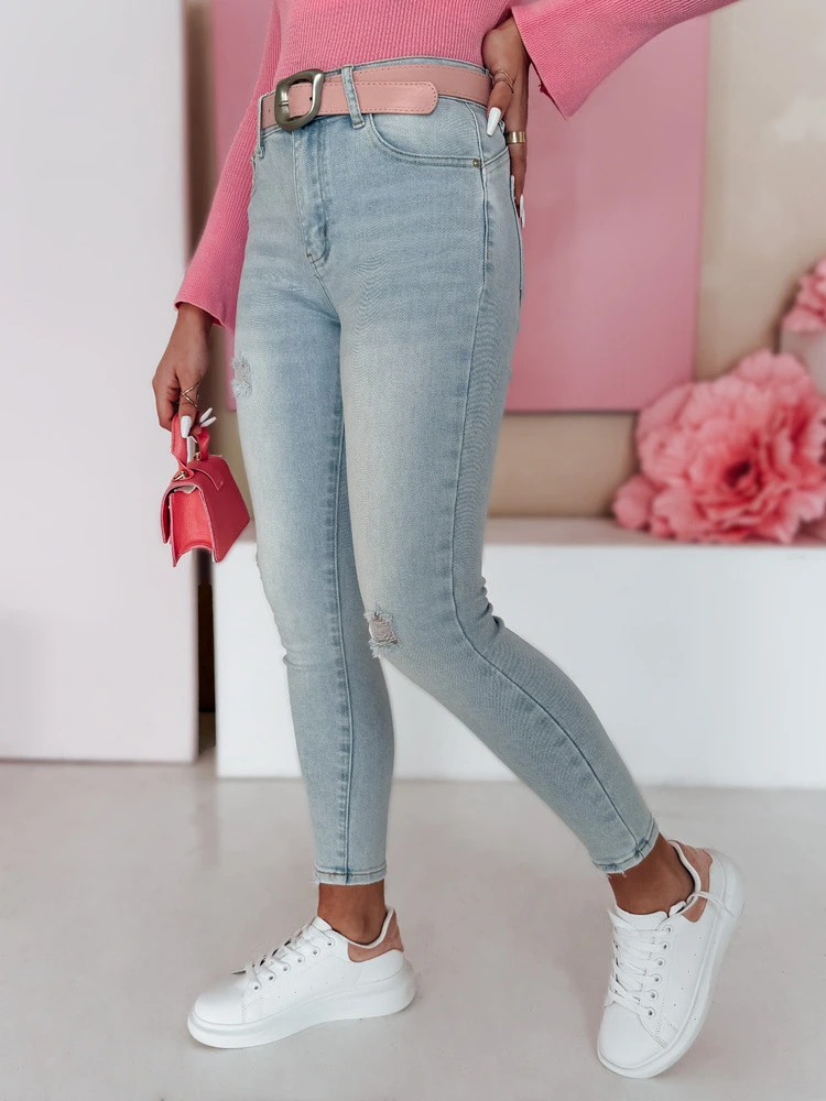 Dámské úzké džínové kalhoty s páskem SLIMIVI modré FashionStreet UY2423