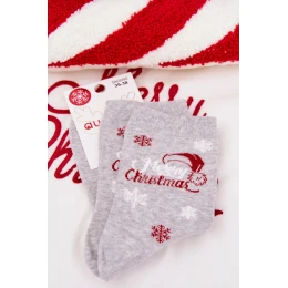 Hřejivé dámské vánoční ponožky v světle šedém odstínu se vzorem sněhových vloček a dekoračním nápisem. Vyrobené z měkké směsi s podílem vlny, která zajišťuje tepelný komfort a příjemný pocit při nošení. Perfektní volba pro zimní období a vánoční atmosféru doma i venku.