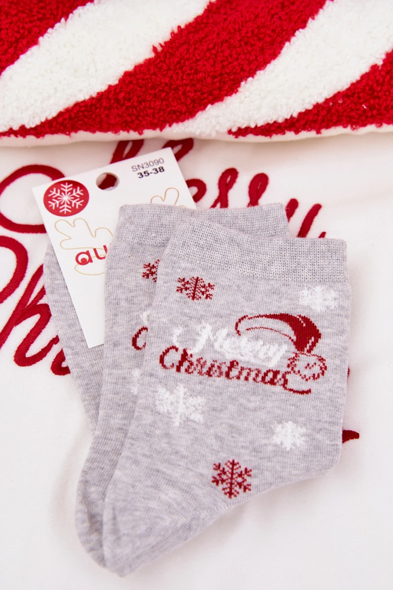 Dámské Vánoční Ponožky Sněhové vločky S Nápisem Světle Šedé