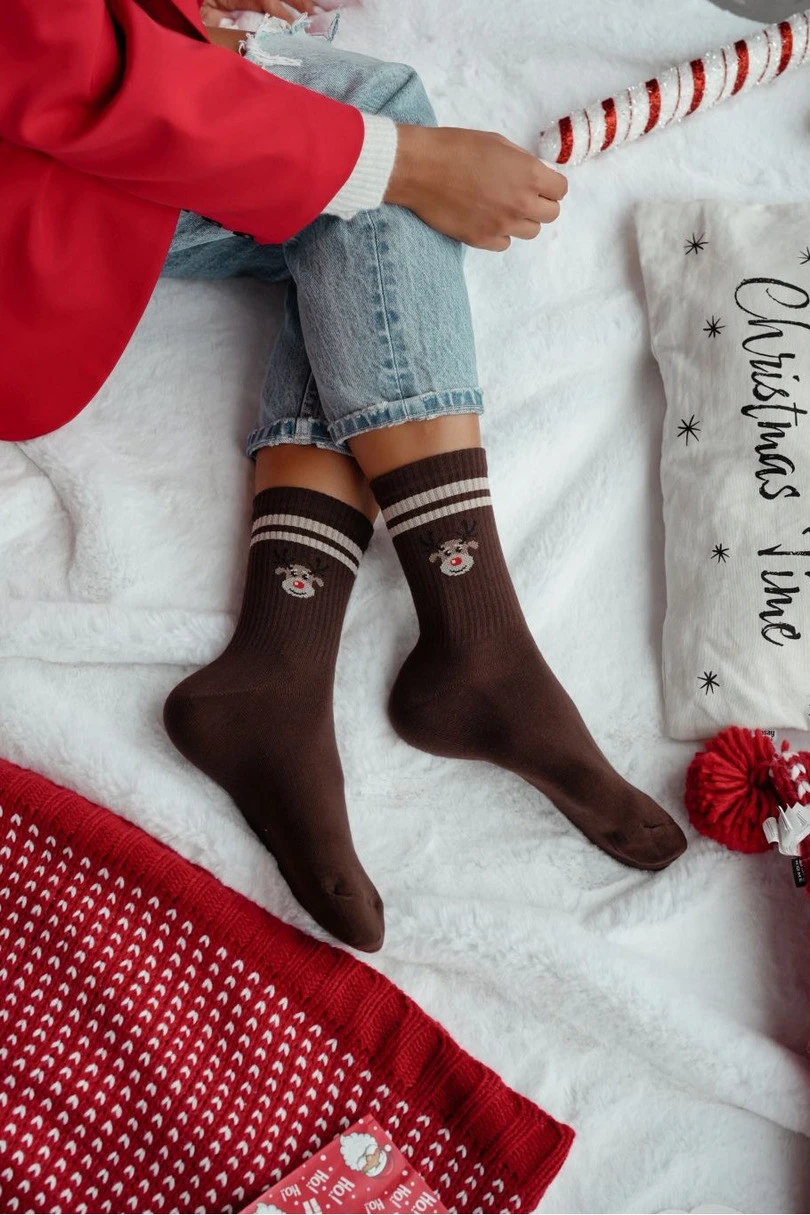 Dámské vánoční ponožky Sobí pruhované s proužky 1283.014