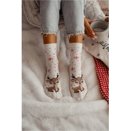 Bavlněné dámské ponožky s vánočními vzory jsou roztomilým doplňkem, který dodá zimním outfitům výjimečný charakter. Měkké, pohodlné a elastické — ideální na chladné dny, jak na nošení doma, tak na každodenní nošení. Skvělá volba pro milovnice vánoční atmosféry.