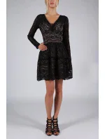 Krajkové šaty s dlouhými rukávy v černé barvě. Šaty s jemně rozšířeným spodním dílem. Šaty se zapínají na krytý zip. Ideální pro mnoho příležitostí.
