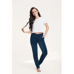 Dámské velurové kalhoty s dlouhými nohavicemi.