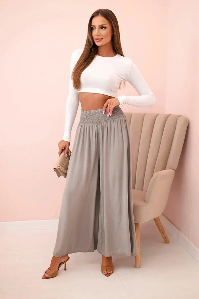 Pokud hledáte pohodlné a stylové kalhoty na každý den nebo na dovolenou, tyto dámské palazzo kalhoty jsou trefou do černého! Vyrobené ze 100% lehké, vzdušné viskózy poskytují nejen komfort při nošení, ale také krásně padnou na postavu. Široké nohavice a rozšířený střih dodávají každému pohybu lehkost a eleganci a elastický pas se skvěle přizpůsobí pasu. Ideální na procházku, nákupy i na pláž – stačí přidat jednoduchý top a je to! Univerzální model, který by neměl chybět ve vašem šatníku. Velikost je univerzální a hodí se pro ženy velikosti S, M nebo L.