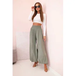 Dámské viskózové kalhoty s elastickým pasem khaki