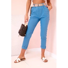 Dámské viskózové kalhoty s páskem a ohrnutými nohavicemi džínovina
