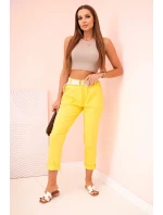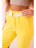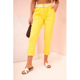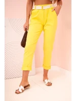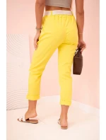 Dámské viskózové kalhoty s páskem a ohrnutými nohavicemi tmavě žlutá