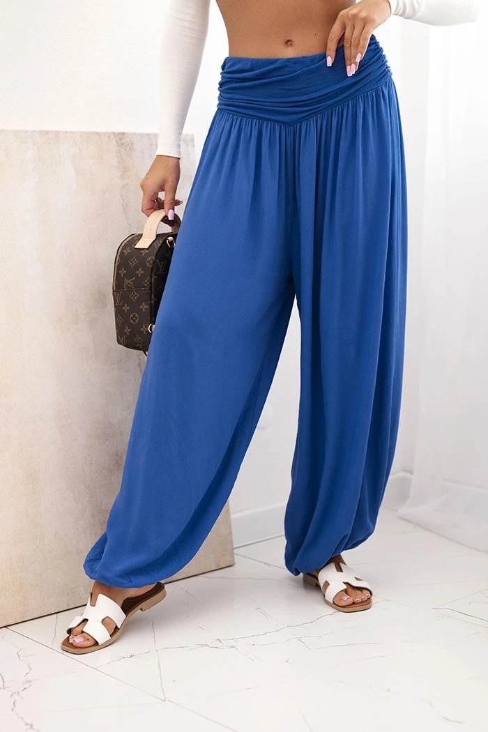 - Detaily: jemné řasení, zakončení nohavic s gumičkou