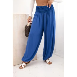 Dámské viskózové kalhoty s širokými nohavicemi a volánky chrpově modrá
