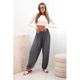 Dámské viskózové kalhoty s širokými nohavicemi a volánky grafit