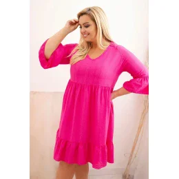 Dámské viskózové šaty Plus Size s ažurovou ozdobou Fuchsiová