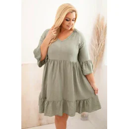 Dámské viskózové šaty Plus Size s ažurovou ozdobou khaki