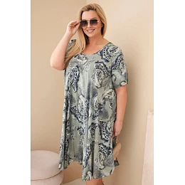 Dámské viskózové šaty Plus Size s krátkým rukávem a paisley střihem khaki