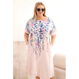 2. Dámské viskózové šaty Plus Size s krátkým rukávem a rozparky na bocích pudrově růžová