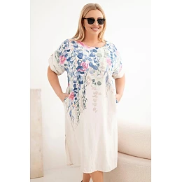 Dámské šaty plus size s krátkým rukávem jsou vynikající volbou pro ženy, které hledají pohodlné a zároveň stylové oblečení na každý den. Model se vyznačuje jemným rostlinným vzorem v horní části, který přidává celku lehkost a ženské kouzlo. Volný střih zajišťuje, že šaty dobře padnou na postavu a poskytují pohodlí při nošení po celý den.