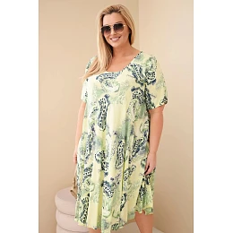 Dámské viskózové šaty pro plnoštíhlé s krátkým rukávem a paisley potiskem světle zelená