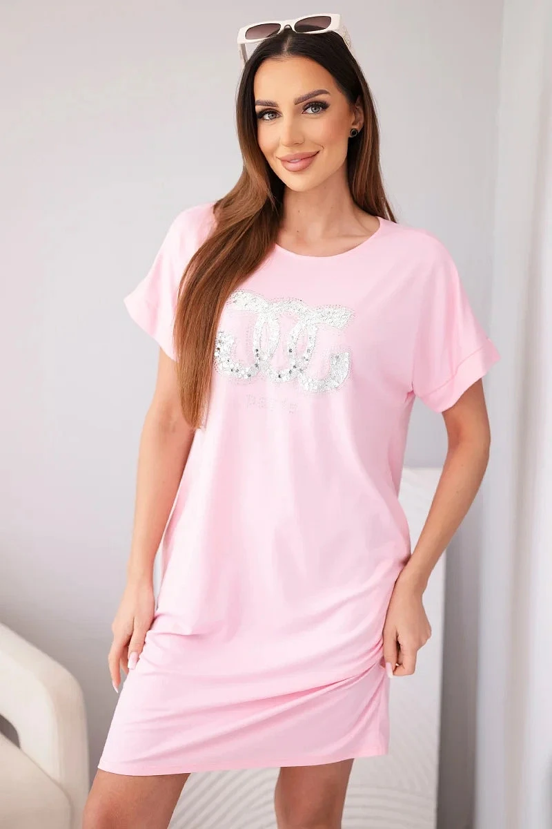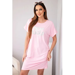 Dámské viskózové šaty s krátkým rukávem a ozdobným potiskem bonbonově růžová