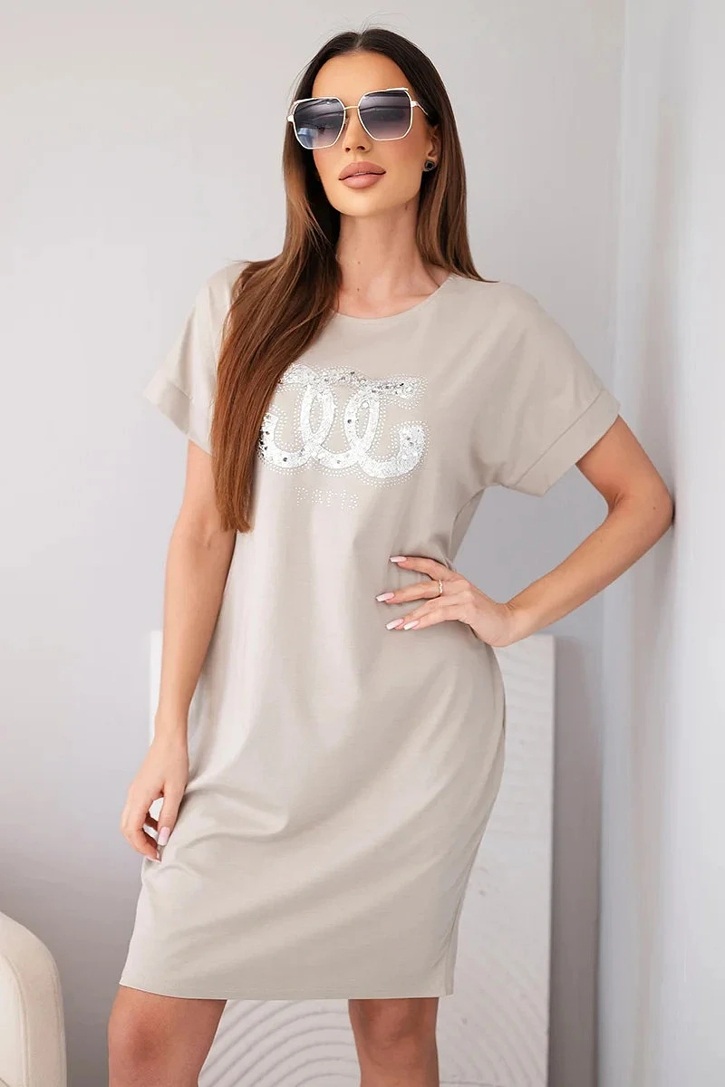 Dámské oversize šaty s krátkým rukávem jsou módní a pohodlnou volbou pro ženy, které si cení stylu a komfortu v každodenních outfitech. Volný střih způsobuje, že se šaty hezky přizpůsobí postavě, zajišťují volnost pohybu a lehkost nošení. Ozdobný potisk vpředu dodává charakter a přitahuje pozornost, čímž celku propůjčuje moderní vzhled.