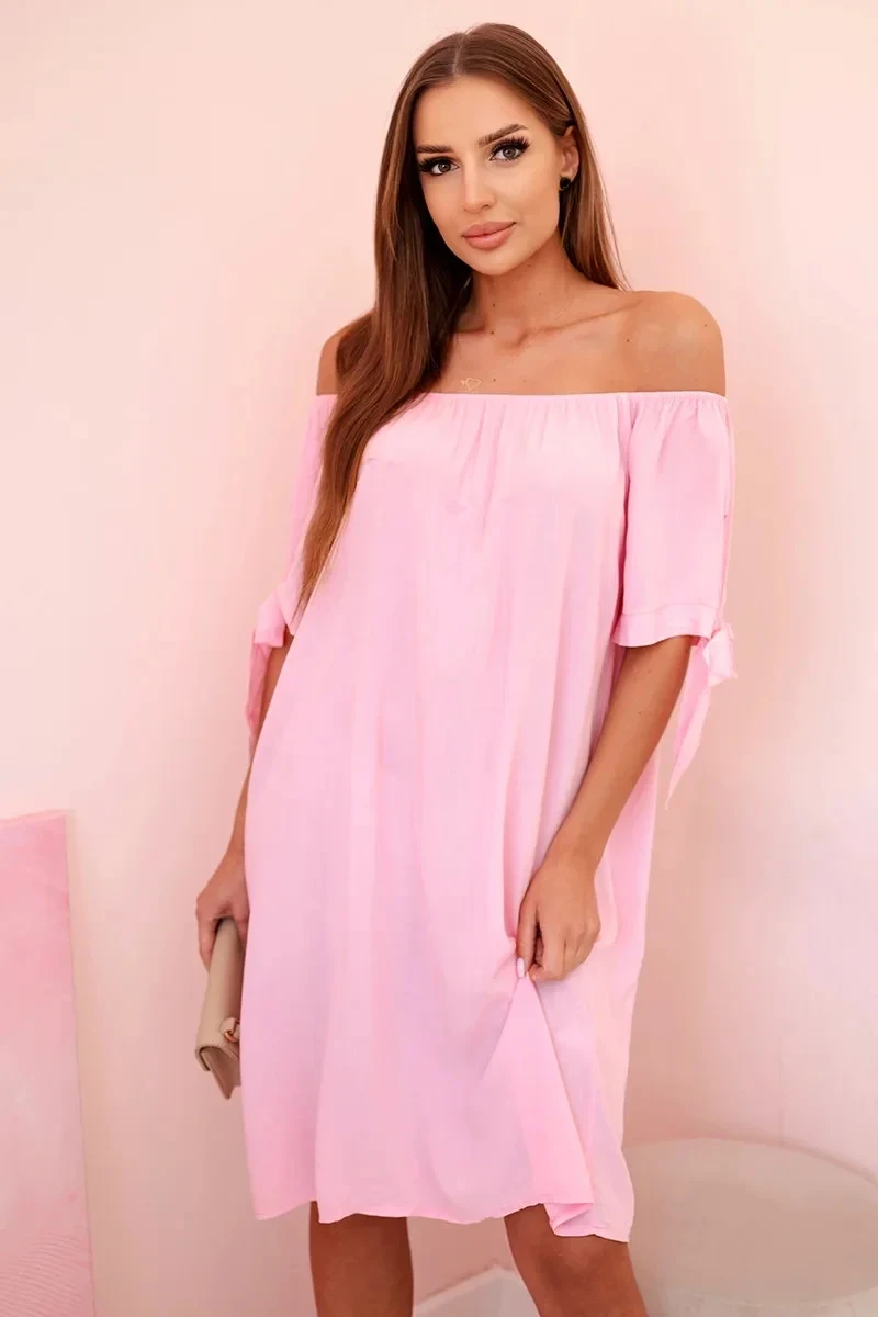 Dámské viskózové šaty s vázáním na rukávech, cukrově růžové