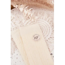 Hřejivé dámské ponožky z příjemné vlněné směsi v jemném ecru odstínu. Díky vysokému podílu vlny poskytují tepelný komfort a měkkost. Elastický lem zajišťuje, že ponožky drží na noze, aniž by tlačily. Ideální volba pro chladné zimní dny i domácí pohodlí.