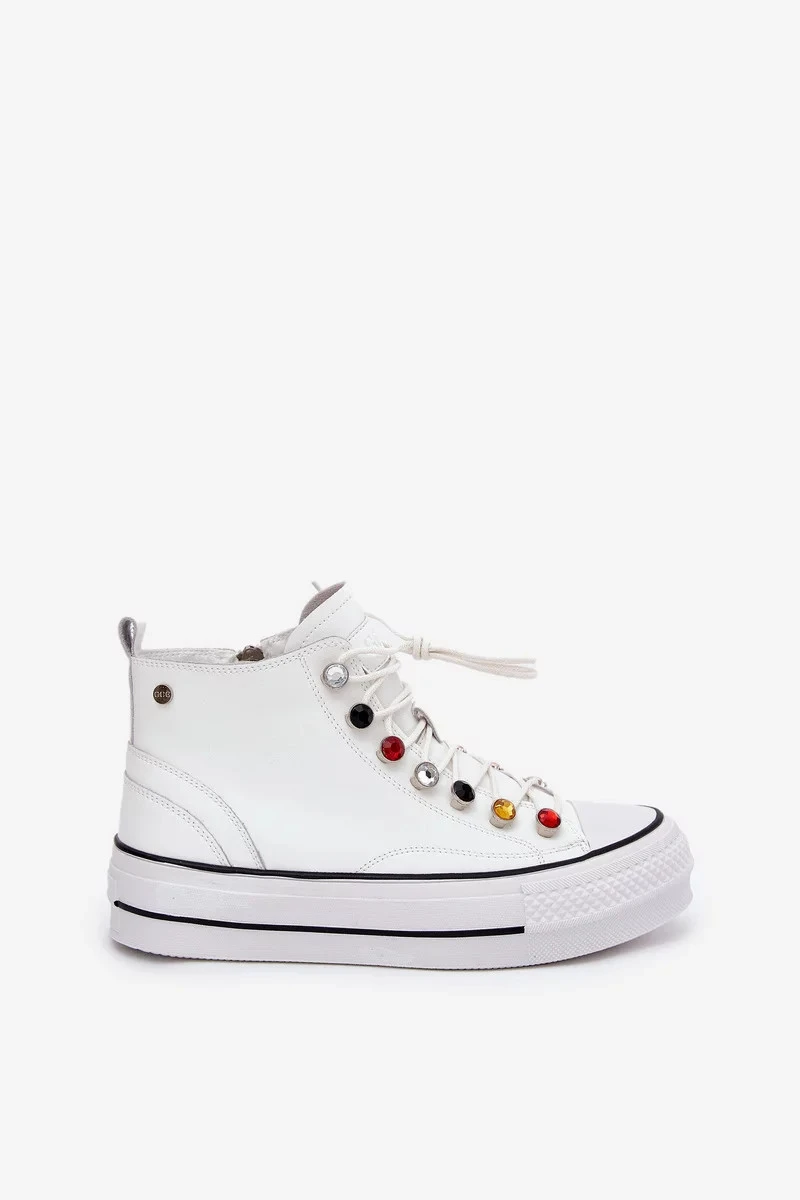 Dámské vysoké kožené trampky GOE – bílé
