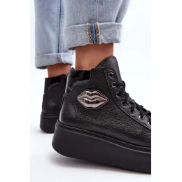 Dámské vysoké tenisky jsou vyrobeny z přírodní kůže. Mají šněrování a zip na boční straně svršku. Tento pohodlný model je namontován na masivní platformě. Stélka je rovněž vyrobena z přírodní kůže. Klasický design, pohodlný střih a módní zdobení tyto tenisky odlišují od ostatních modelů! Při výběru velikosti se řiďte tabulkou velikostí.