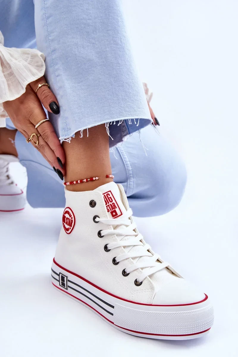 Dámské vysoké textilní tenisky na platformě Big Star LL274185 Bílá