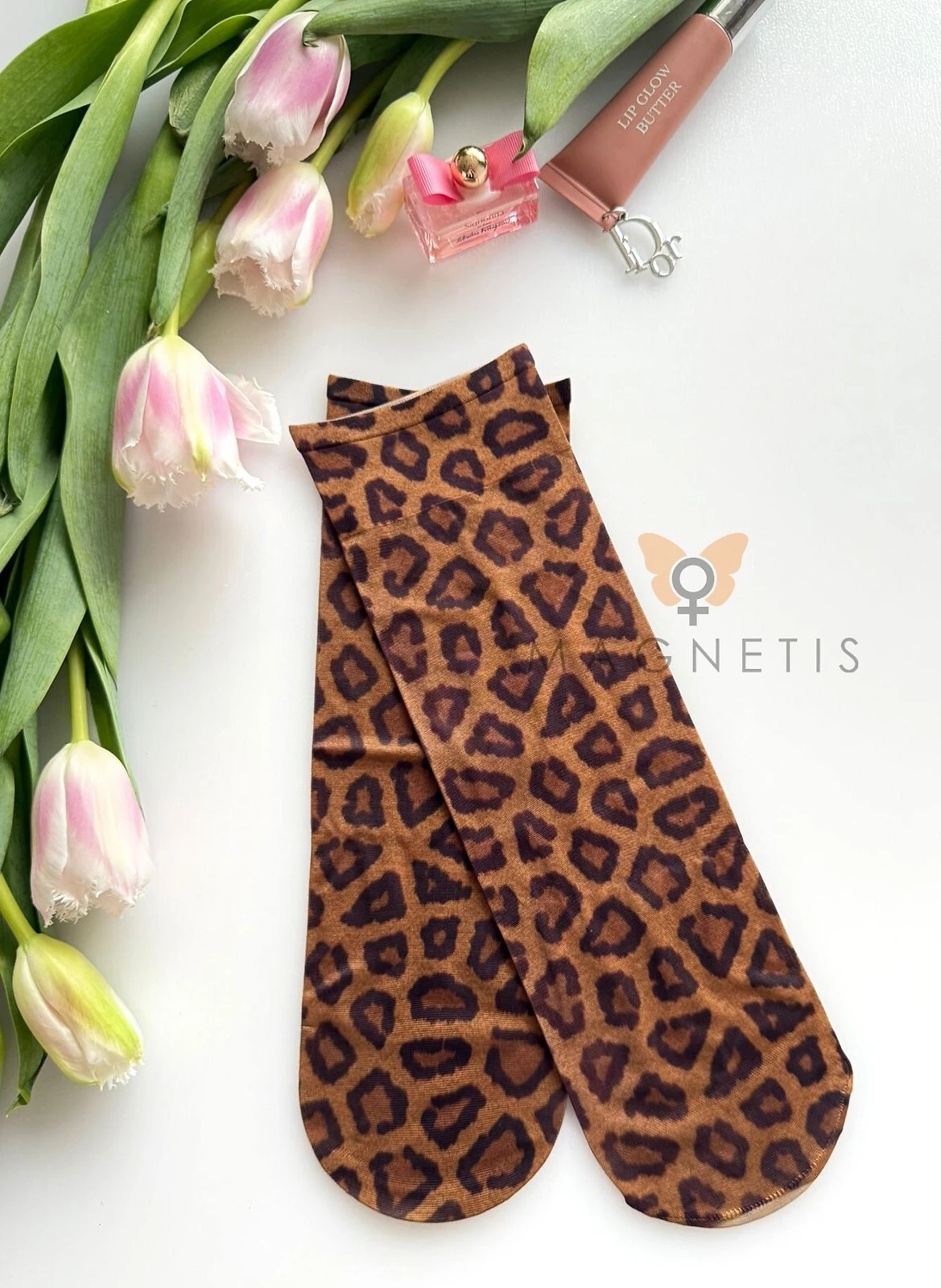 Vzorované dámské ponožky, které jsou vyrobené z lycry.