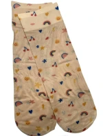 Model má lem, který při nošení netlačí. Ponožky jsou ozdobené různými vzory: květinovými, gepardími, károvanými, puntíkovanými, se srdíčky.