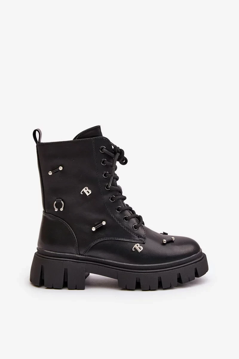 Dámské Workery Boty S Ozdobami Eko Kožené Černé Cadenilla