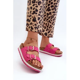 Dámské žabky na platformě s přezkami z ekokoženky fuksiové Ursila