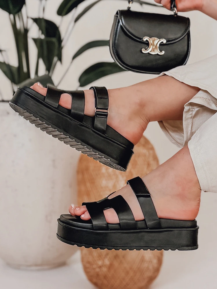 Dámské žabky na suchý zip PLATFOR black FashionStreet ZY0867
