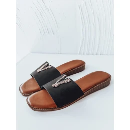 Stylové žabky na ploché podrážce jsou návrhem pro ženy, které si cení pohodlí a elegance. Ozdobný detail v podobě písmene V jim dodává jedinečný charakter. Jsou vyrobeny z měkké ekologické kůže a skvěle se hodí na léto - k šatům i šortkám.
