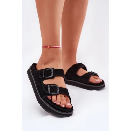Dámské Zamszové Klapky S Klamrami D.Franklin Černé DFSH405001
