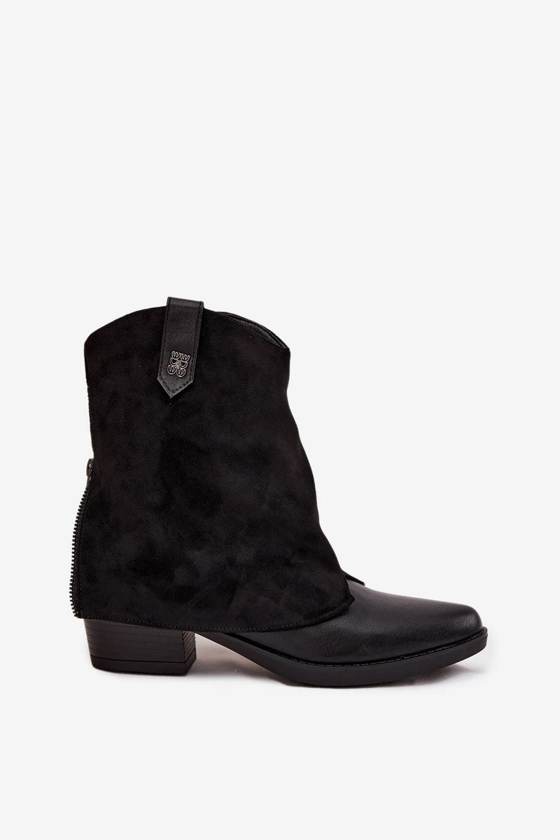 Dámské zateplené kotníkové botky kovbojky na sloupku – černé Sylvette