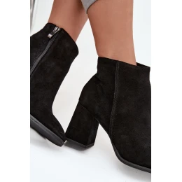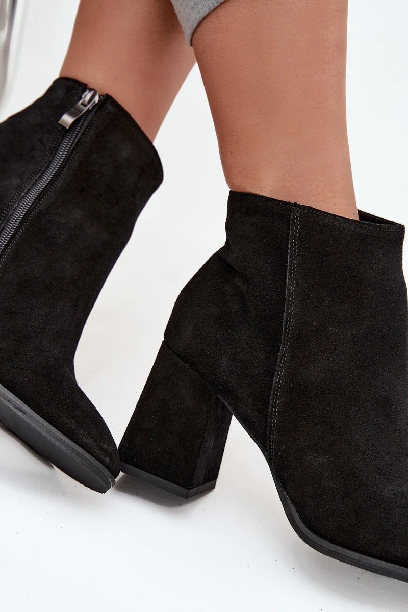 Dámské zateplené kotníkové botky z přírodního semiše na sloupku – černé Zazoo