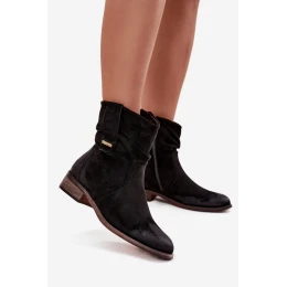 Dámské zateplené kotníkové boty na nízkém podpatku s řasením Gracia – černé