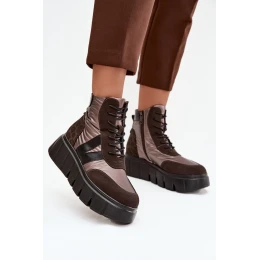 Dámské zateplené kotníkové boty na platformě 58562 Hnědá vzor - Vinceza